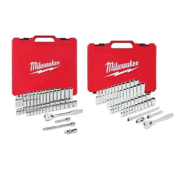 Milwaukee 3 8 In And 1 4 In Drive Sae Metric Ratchet And Socket Mechanics Tool Set 106 Piece Walmart Com